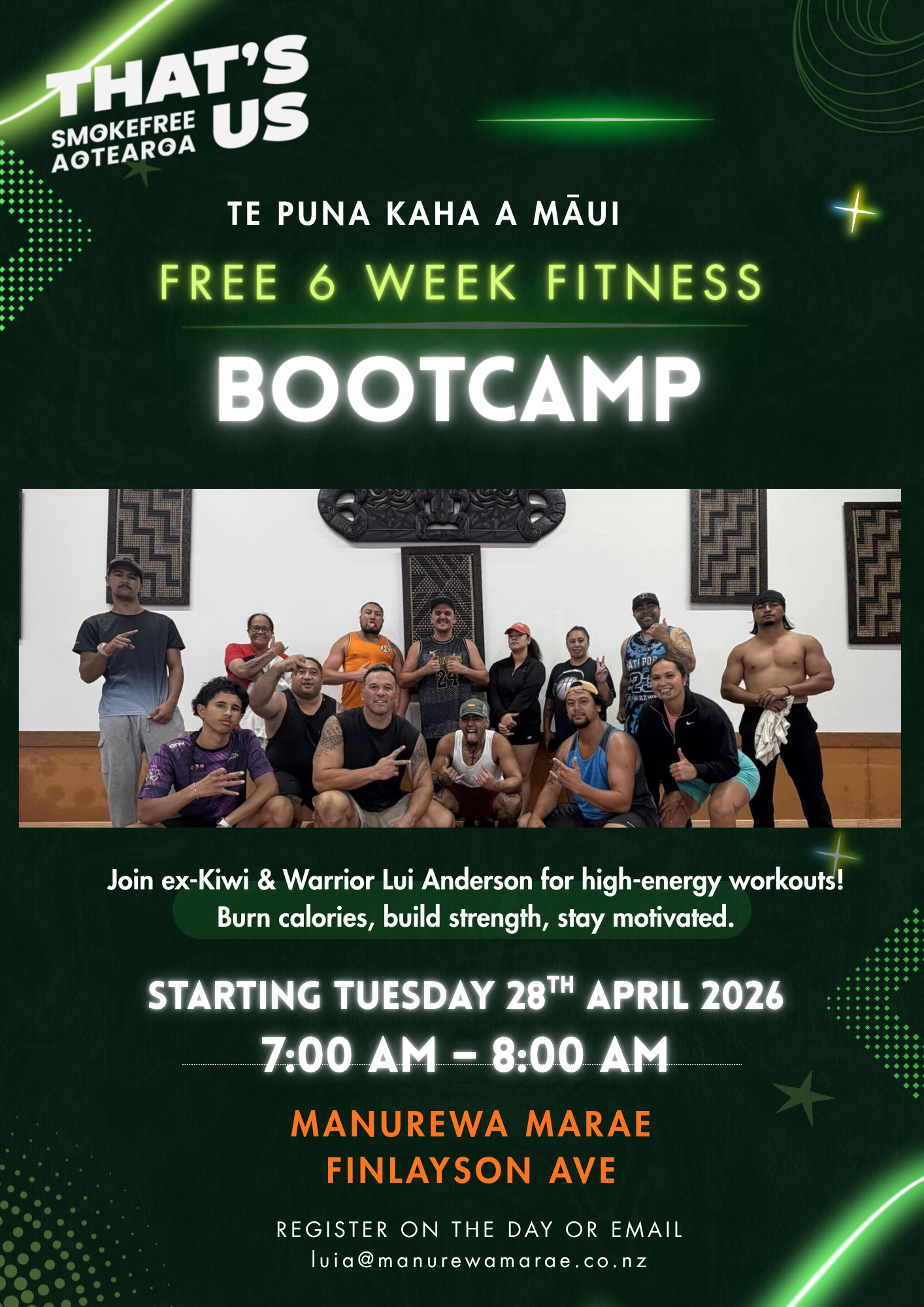 Join us at Manurewa Marae for a 6-week fitness bootcamp with Lui Anderson β ex Kiwi & NZ Warrior.