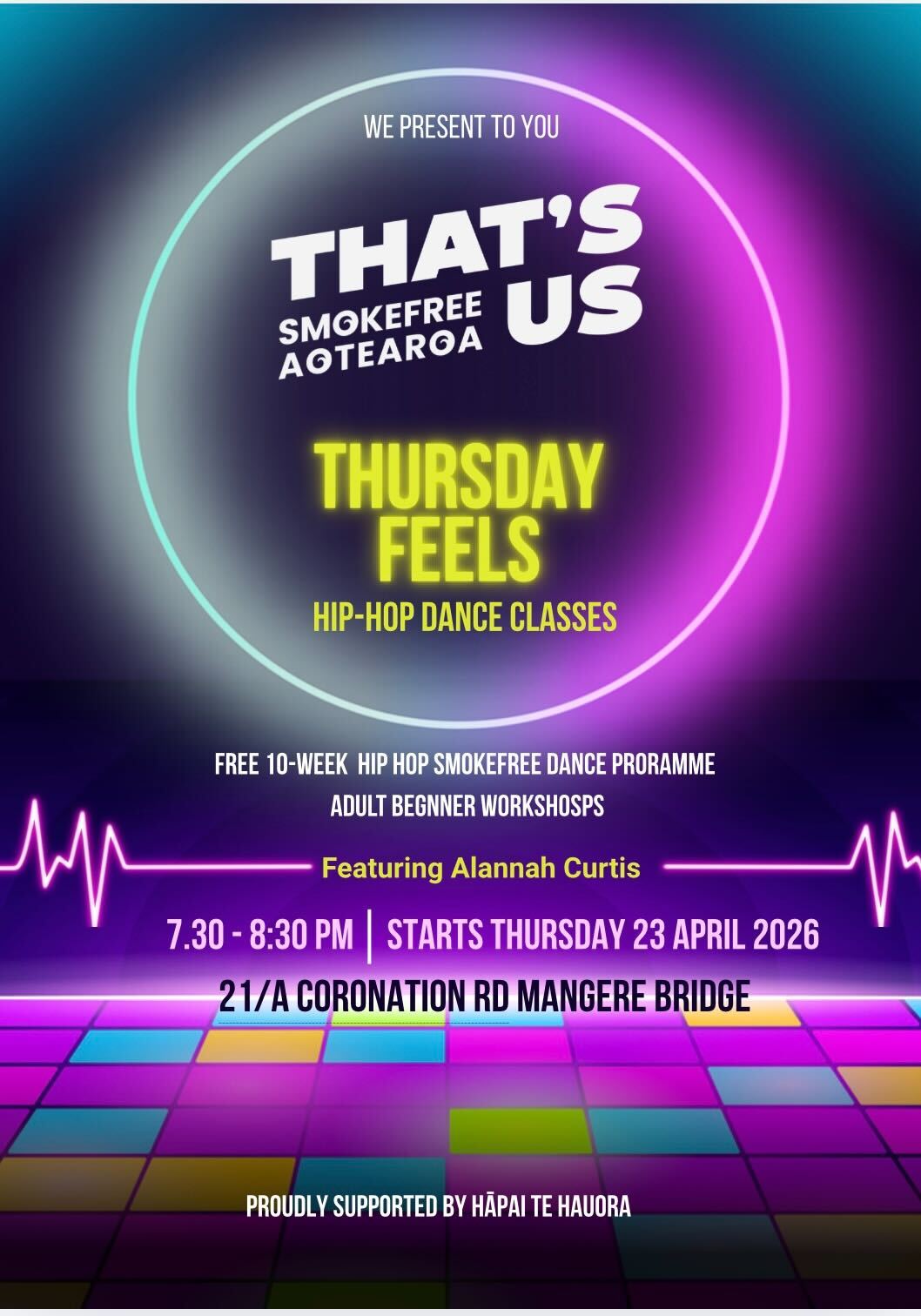 A 10-week space this World Smokefree May to show up as you are. No pressure. No judgement. Just movement, kōrero, and support. Whether you’re starting your smokefree journey or just need a positive reset — you’re welcome here. Bring a mate, bring your whānau, or come solo. We move together, grow together, and keep showing up. Thursdays | 7:30–8:30pm